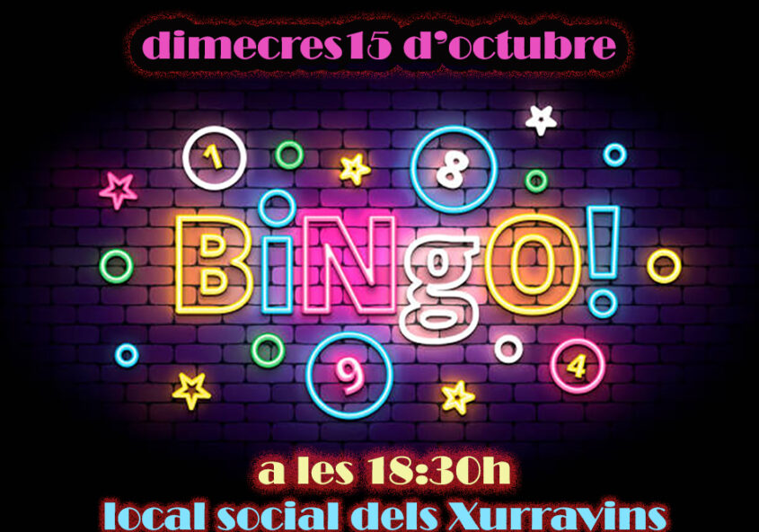 27 d'agost de 2025BINGO DELS XURRAVINS – DIMECRES 15 D’OCTUBRE A LES 18:00h