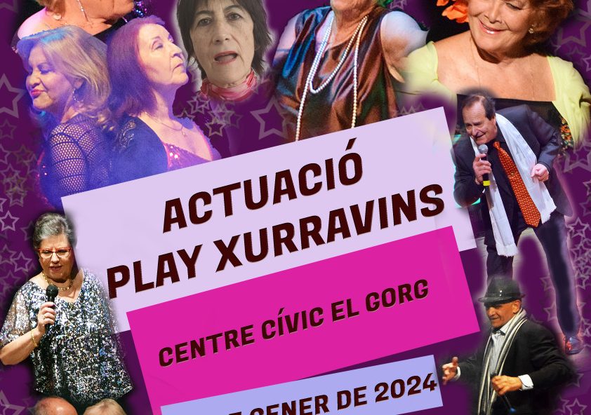 9 de gener de 2024Diumenge 28 de gener de 2024 a les 18:00h – ACTUACIÓ DEL GRUP PLAY XURRAVINS – teatre del centre cívic
