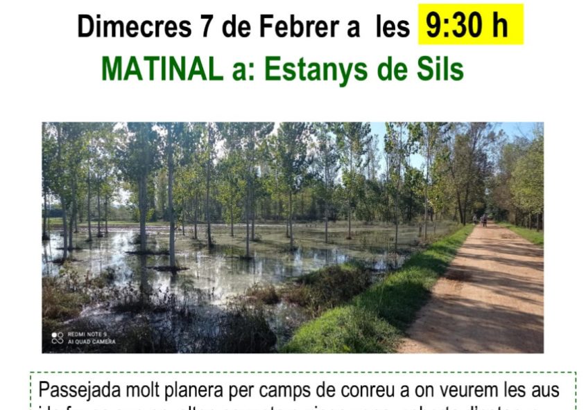 Dimecres 7 de febrer, a les 9:30h, el grup CAMINAR SALUDABLE, sortirà del centre cívic per anar a l’Estany de Sils. Aquesta serà una passejada molt planera pels camps de conreu on…