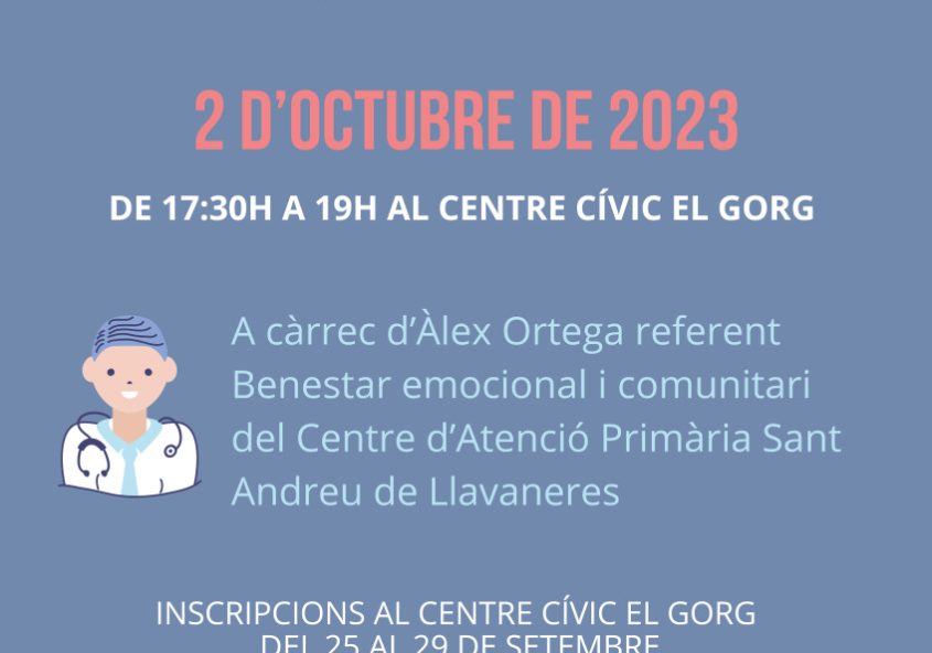 Xerrada a càrrec d’Àlex Ortega, referent de Benestar Emocional i Comunitari del CAP de Sant Andreu de Llavaneres. Inscripcions del 25 al 29 de setembre: – a l’oficina dels Xurravins del centre…