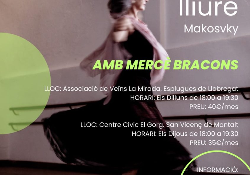 27 de setembre de 2023NOU CURSET DE BALL – DANSA LLIURE MAKOWSKY, amb Mercè Bracons – Tots els dijous de 18:00 a 19:30 – preu 35€ c/mes