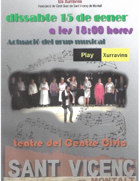 Començaran després del 7 de Gener. Per participar en els cursos cal apuntar-se Els Xurravins o el telèfon del professor. Descarrega la programació e informa't de tots els esdeveniments i cursos programats…5 de gener de 2022Actuació Grup Musical Play Xurravins