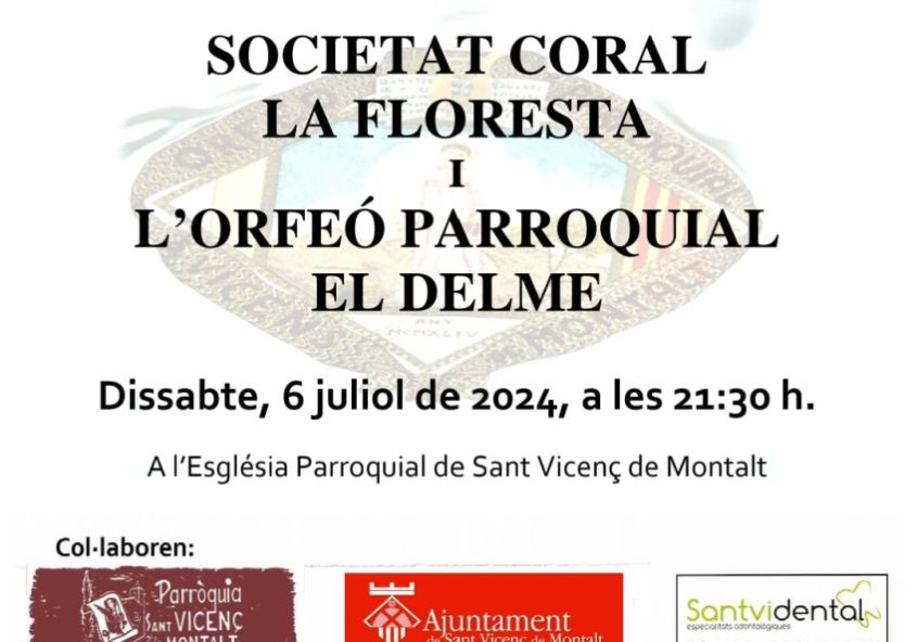 6 d'agost de 2024ORFEÓ PARROQUIAL EL DELME – CONCERT D’ESTIU – dissabte 6 de juliol de 2024 a les 21:30h