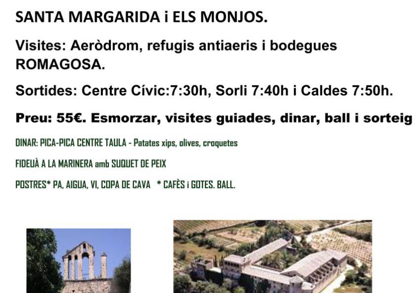 8 de maig de 2024SORTIDA CULTURAL – SANTA MARGARIDA I ELS MONJOS